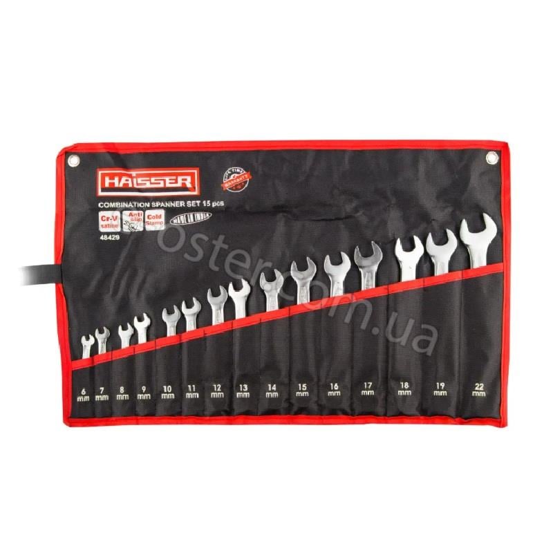 Особенности набора ключей комбинированных 15 шт 6-22 мм Cr-V HAISSER 48429: