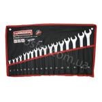 Набор ключей комбинированных 17 шт 6-24 мм Cr-V HAISSER 48480 предназначен для механо-сборочных, слесарных, ремонтных работ. Состоит из 17 комбинированных (рожковых-накидных ключей), изготовленных в соответствии с DIN 3113. Также ключи соответствуют требованиям ГОСТ ДСТУ 16983-80. Изготовлены методом холодной штамповки (Cold stamped), что повышает прочность и устойчивость ключа. Для защиты от коррозии поверхность ключей покрыта хромом (матовое, сатиновое хромирование). Благодаря такому решению существенно увеличивается срок эксплуатации ключей. В состав набора входят комбинированные ключи следующих размеров - 6, 7, 8, 9, 10, 11, 12, 13, 14, 15, 16, 17, 18, 19, 21, 22, 24 мм. Для удобства хранения и транспортировки - ключи хранятся в чехле, с карманом под каждый ключ.